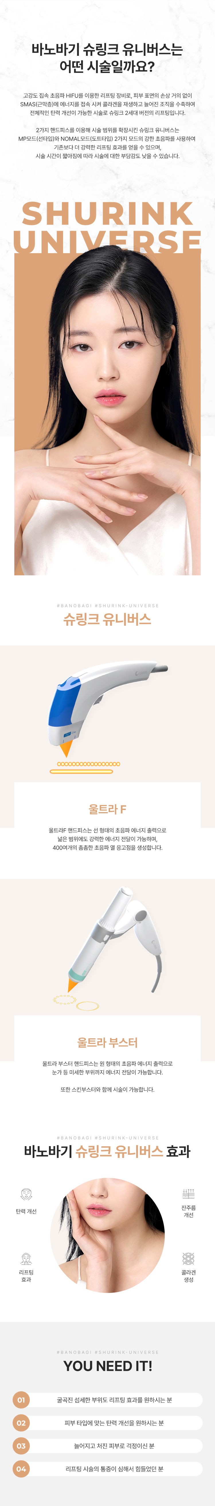 시술안내 리프팅 바노바기 시그니처 보톡스/윤곽 필러 리프팅 스킨부스터 레이저 바디 기타 슈링크 유니버스 텐써마 블랙리프팅 슈링크 유니버스 리프테라2리프팅 울쎄라리프팅 인모드리프팅 텐쎄라리프팅 잼버실리프팅 민트실리프팅 울트라V리프팅 바비코